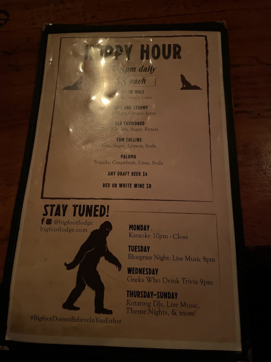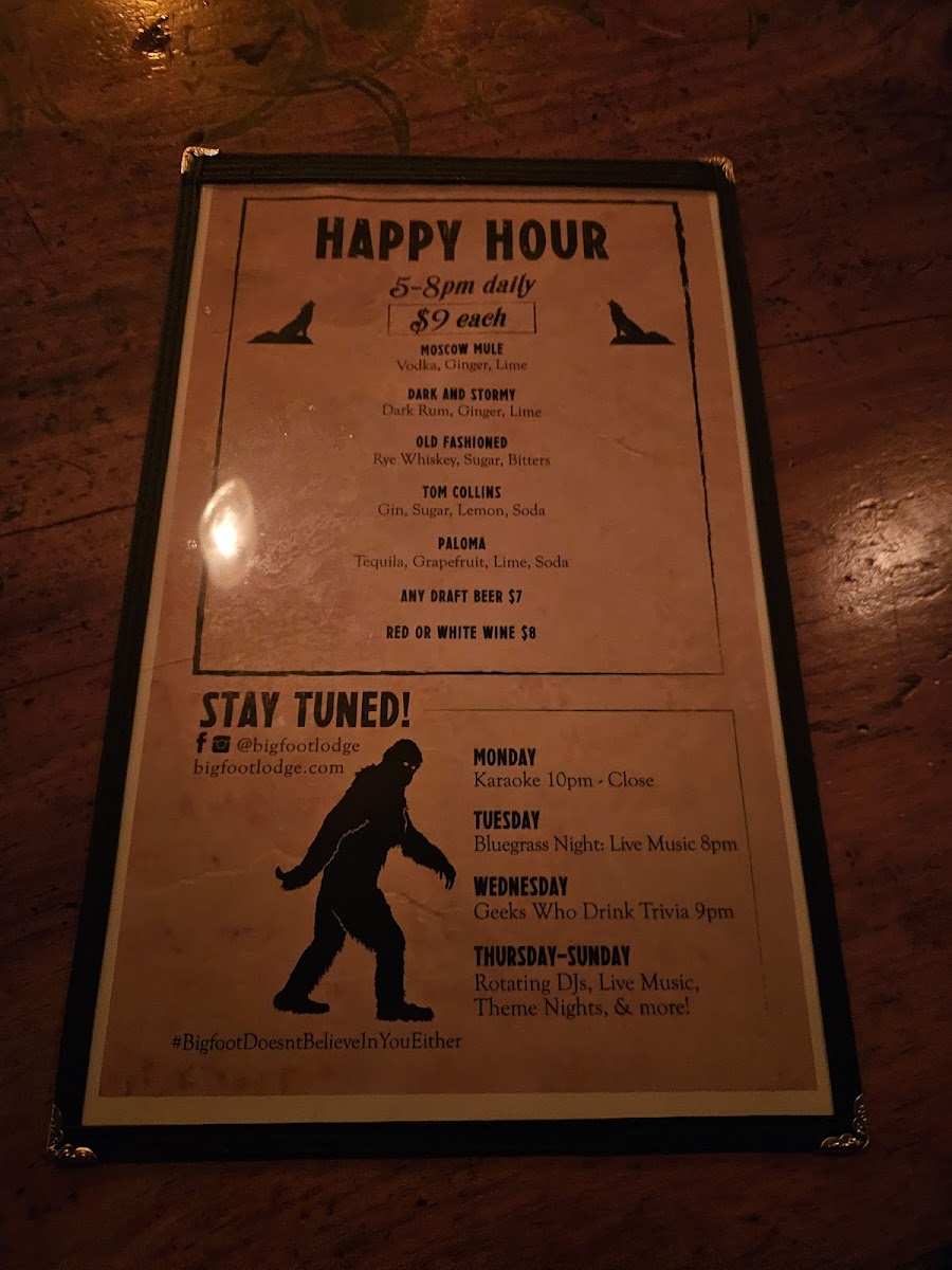 While food might not be on offer, Bigfoot Lodge compensates with great drinks and an unforgettable atmosphere, making it a must-visit destination for casual hangouts.